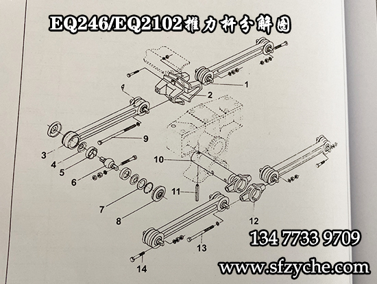 EQ246、EQ2102系列東風(fēng)六驅(qū)平頭軍車推力桿圖片及配件型號:
