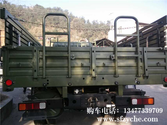 東風(fēng)國五天錦EQ1120GA2型運(yùn)兵車,4×2驅(qū)動(dòng),D530平頭一排半平頂駕駛室,,軸距3800mm,康明斯ISD245 50國五排放245馬力,6.7升發(fā)動(dòng)機(jī),八擋變速箱,帶電加熱(預(yù)熱塞)冷起動(dòng)裝置,全鋼全鋼 主油箱160L,80L副油箱,Φ395mm推式膜片彈簧離合器,東風(fēng) 4.5噸前橋,9噸后橋,主減速比5.286,車架斷面250×80×(7+4)mm,鋼板彈簧片數(shù)7/9+6,9.00R20鋼絲胎,電動(dòng)玻璃升降器,中控門鎖,通道式儀表板,帶空調(diào),車廂內(nèi)部尺寸為4950x22325x600mm鐵木混合結(jié)構(gòu),邊板帶坐凳,板材采用國標(biāo)鋼材,邊板1.2mm,底板為3mm的花紋鋼板,車廂底橫梁用槽鋼加固,車廂縱副梁全槽鋼結(jié)構(gòu),能滿足客戶運(yùn)輸重型貨物,適應(yīng)部隊(duì)野外使用及冰雪路面行駛要求。全面繼承東風(fēng)40多年軍車越野車制造經(jīng)驗(yàn),動(dòng)力總成匹配合理,生產(chǎn)技術(shù)成熟穩(wěn)定,整車車輛全面通過軍檢。