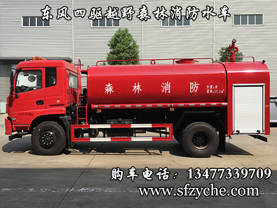 東風(fēng)新款四驅(qū)越野森林消防灑水車_東風(fēng)11.1噸四驅(qū)消防水車_國五四驅(qū)越野森林滅火水車_東風(fēng)4×4越野SCS5183GPSEQ型四驅(qū)綠化噴灑車簡介:采用東風(fēng)EQ2180GD5DJ型越野汽車底盤,東風(fēng)D913新款駕駛室,4×4驅(qū)動(dòng),康明斯ISB190 50國五發(fā)動(dòng)機(jī),六檔變速箱,東風(fēng)商用車橋,前驅(qū)動(dòng)橋3.8噸,后橋10噸,10.00R20輪胎,軸距4500mm,電動(dòng)玻璃,方向助力,斷氣剎,ABS。罐體采用優(yōu)質(zhì)碳鋼Q235板材,板材厚度4mm,罐體容積11.1立方,安裝夾心取力器,后置泵箱,消防栓接口左右各一個(gè),消防炮采用PS30-50D消防水炮,流量40L/S/1.0MPa 水射程:≥50m,消防泵采用常壓消防泵型號(hào):CB10/40車用消防泵,流量:40L/s,壓力:1.0MPa,帶前沖,駕駛室頂部安裝長條警燈帶喊話器,全車顏色橘紅,兩側(cè)噴涂白色森林消防字樣。
