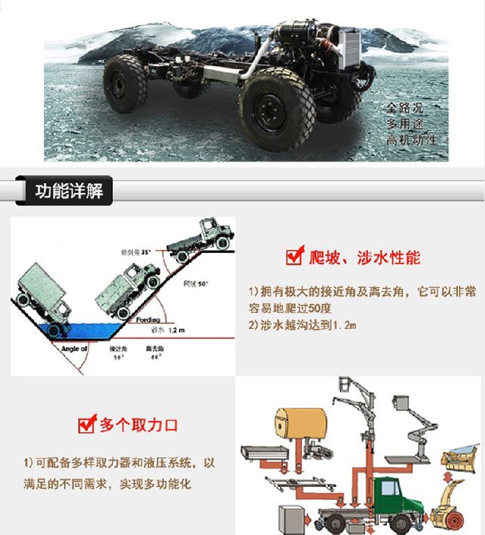 東風(fēng)EQ2070FFZ4D型高性能越野特種車(chē)是一款技術(shù)先進(jìn)、性能卓越、多功能、全天候的特種越野車(chē),也是中國(guó)上唯一在沙漠、山區(qū)等極其艱苦環(huán)境條件下顯示高技術(shù)、高性能和高可靠性的軍用和特殊民用汽車(chē)。該產(chǎn)品,無(wú)論是越高山峻嶺、穿林海雪原,還是闖茫茫沙漠、涉沼澤泥潭,無(wú)論是用作防彈運(yùn)兵、戰(zhàn)地救護(hù),還是用作森林消防和野外勘探,它都能以超一流的越野通過(guò)能力、高涉水性,可靠耐久性和優(yōu)異的上裝適用能力,令世人嘆為觀止,當(dāng)之無(wú)愧地成為挑戰(zhàn)越野極限的明星。如需了解更多EQ2070FZ4D型越野四驅(qū)汽車(chē)的詳細(xì)參數(shù)和配置請(qǐng)立即撥打銷(xiāo)售熱線:13477339709 李經(jīng)理 0722-7053060 業(yè)務(wù)QQ:530233927,微信號(hào):13477339709 ,東風(fēng)越野卡車(chē)網(wǎng)址:www.lyhdxxkj.com