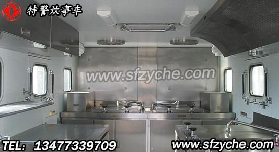 該車采用軍用統(tǒng)型二類底盤,車廂為隔熱保溫大板粘接式輕型結(jié)構(gòu),多種供電方式為車內(nèi)各用電設(shè)備提供電源。車內(nèi)配有高效的封閉式燃油節(jié)能爐灶、配套設(shè)備、各種廚具、等。本車具有操作方便、使用可靠、熱效率高,保溫效果好等特點,適應(yīng)全天候展收作業(yè),是先進的后勤裝備。
