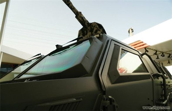 東風四驅防雷反恐戰(zhàn)車全車具備防護7.62毫米口徑穿甲彈攻擊,正向具備防護12.7毫米口徑機槍彈攻擊(100米),而全車所有玻璃可以抵御7.62毫米口徑穿甲彈連續(xù)射擊3次擊穿。為了提升防護級別、密封效能和降低觀察死角,全車防彈玻璃突出車身焊接外側安裝。