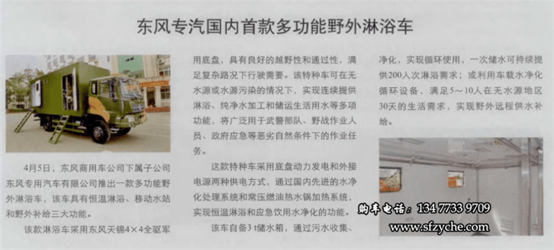 > 新聞中心 > 技術(shù)文獻(xiàn) > 東風(fēng)專汽推出國內(nèi)首款東風(fēng)四驅(qū)多功能野外淋浴車
