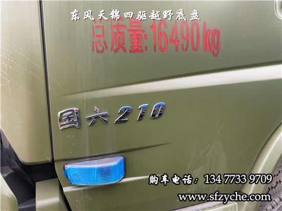 相關(guān)車型國六排放天錦(4×4)越野底盤,采用DFV2163GP6DJ型國六排放東風(fēng)天錦四驅(qū)越野底盤,東風(fēng)天錦D530一排半駕駛室,4×4驅(qū)動,康明斯B6.2NS6B210國六發(fā)動機210馬力,最大扭矩:850N.m/1100-1700rpm,排量6.2L、韶齒手動六檔變速箱,東風(fēng)德納車橋,前驅(qū)動橋4.5噸,后橋10噸,10.00R20輪胎,軸距4500mm/4700mm,大梁280mm,電動玻璃,方向助力,斷氣剎,ABS,大燈自動調(diào)節(jié),自動調(diào)整臂,選裝原廠空調(diào)。
