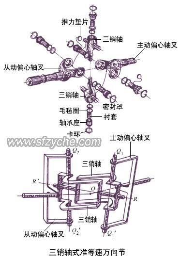 三銷(xiāo)軸式萬(wàn)向節(jié)的特點(diǎn)是保證兩軸角速度接近相等;允許相鄰兩軸有較大的交角,最大可達(dá)45°,可使汽車(chē)獲得較小的轉(zhuǎn)彎半徑,提高汽車(chē)的機(jī)動(dòng)性。這種萬(wàn)向節(jié)的缺點(diǎn)是所占空間較大。優(yōu)點(diǎn):允許相鄰兩軸間有較大的夾角,用于一些越野車(chē)的轉(zhuǎn)向驅(qū)動(dòng)橋。如需了解更多軍車(chē)配件工作原理www.lyhdxxkj.com
