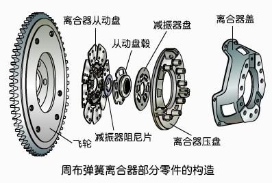 周布彈簧離合器的構造特點是螺旋彈簧沿圓周均勻分布。周布彈簧式離合器的主、從動部分、壓緊部分均安裝在離合器殼內、外及駕駛室中。