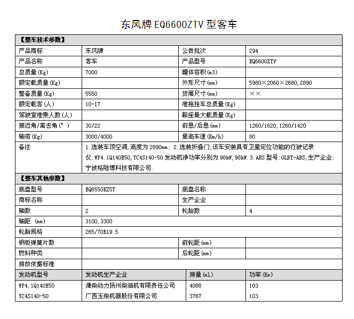 EQ6600ZTV四驅(qū)越野客車圖片,國五排放四驅(qū)10座越野客車價(jià)格,6米四驅(qū)客車多少錢,東風(fēng)四驅(qū)越野客車參數(shù)配置: 1.底盤型號(hào)EQ6550KZ5T,發(fā)動(dòng)機(jī)型號(hào):YC4S140 50 國五排放 2.整車外形尺寸長(zhǎng)寬高:(5980×2060×2890)mm 驅(qū)動(dòng)形式:4×4 東風(fēng)分時(shí)四驅(qū) 3.離合助力,方向助力,斷氣剎,鼓式自動(dòng),駕駛區(qū)域空調(diào) 4.車橋?yàn)闁|風(fēng)德納,輪胎為265/70R19.5型越野輪胎,ABS 5.工具箱,前置防裝杠,粘接式推拉玻璃,發(fā)動(dòng)機(jī)底板防護(hù) 6.鋁花紋地板,中檔皮革座椅10個(gè)+1個(gè)折疊座椅,整車座椅安全帶,手動(dòng)式外擺門,正副司機(jī)門,后置雙開門,東風(fēng)原廠派恩頂置空調(diào) , 7.窗簾,滅火器兩個(gè),備胎一個(gè),獨(dú)立燃油暖風(fēng)系統(tǒng)帶兩個(gè)雙面王出風(fēng)口 8.其它為EQ6600ZTV型四驅(qū)越野客車標(biāo)配。具體配置參數(shù)參照(附件一)。 成品合格證、全額上戶發(fā)票、隨車工具、隨車文件各一套。